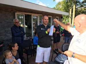 Bij de mannen in de categorie 3 hadden we te maken met blessures, waardoor niet alle wedstrijden in de poule gespeeld zijn. Een zere pols hier; een pijnlijke elleboog daar....Robbert was de fitste en mag de schaal een jaar lang mee naar huis nemen. Ook voor jou: gefeliciteerd!